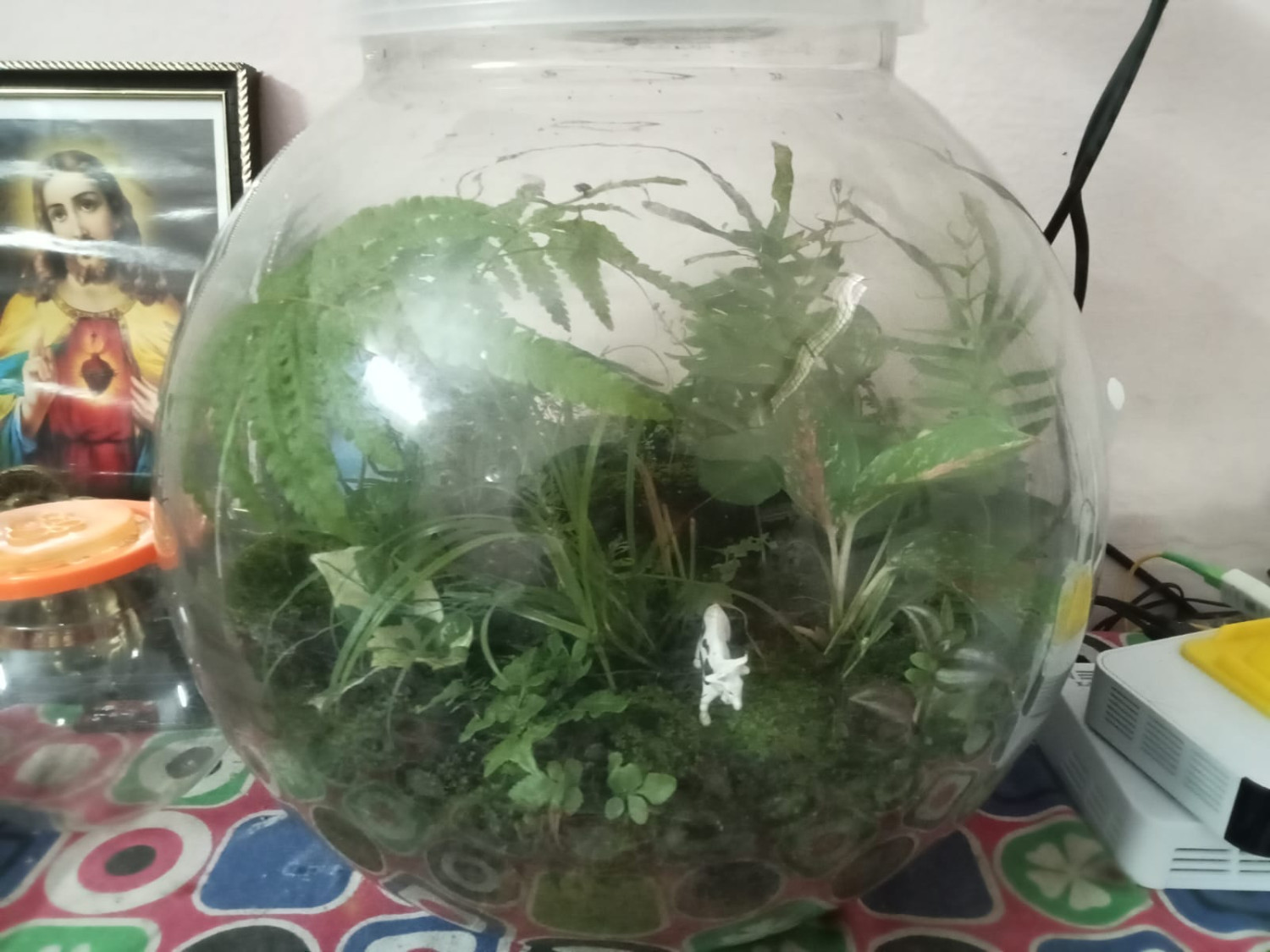 Enclosed within a premium curved-glass bowl, this creation features a harmony of lush ferns, emerald moss, and hand-selected miniature greens — thriving together in perfect equilibrium. A minimalist figurine rests at its heart, symbolizing peace within nature’s rhythm.