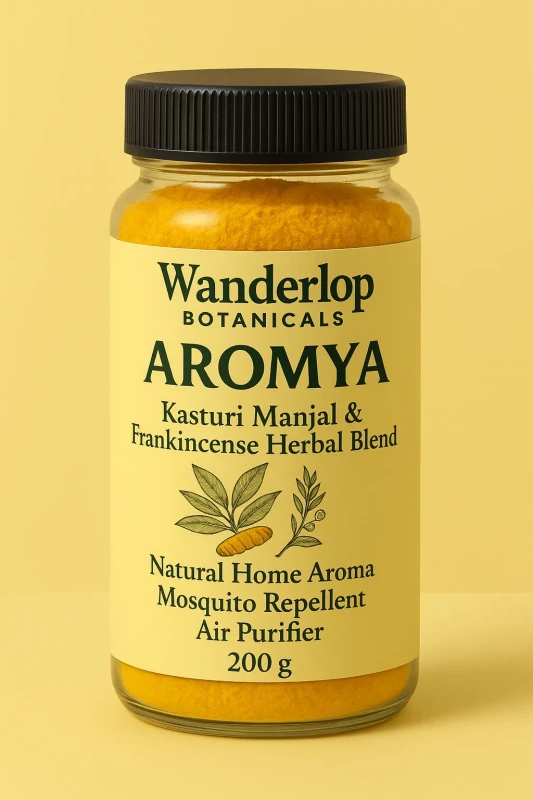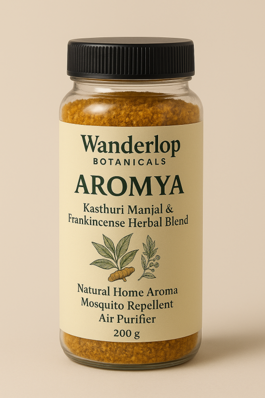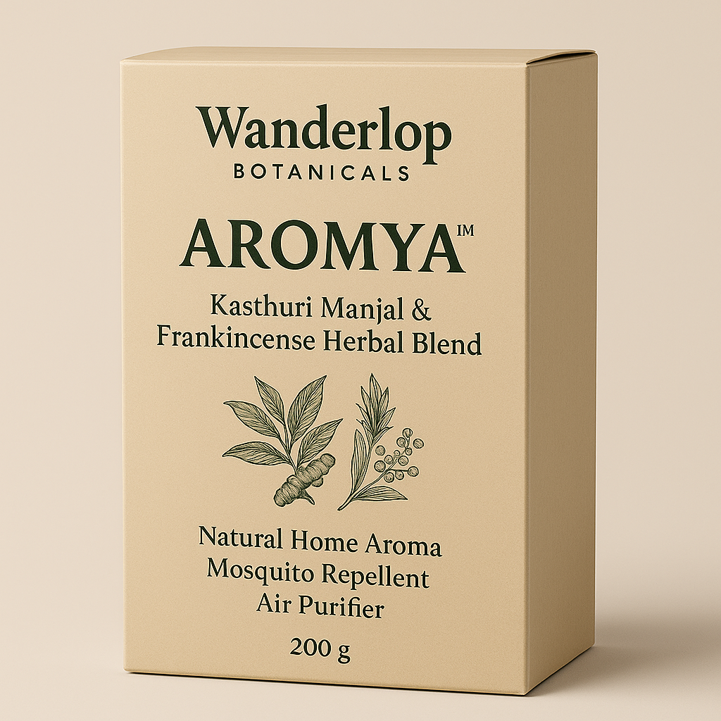 Let your home breathe the purity of nature. Wanderlop Aromya™ is a thoughtfully handcrafted blend of wild Kasthuri Manjal powder and pure Frankincense (Sambrani) resin, designed to create a clean, aromatic, and calming environment with every gentle burn.